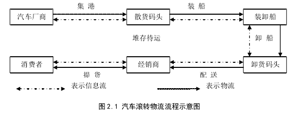 汽車產業是國家重要的工業產業支柱之一,關聯性大、滲透性強,其發展狀況不僅能夠代表工業發展水平的高低,更能帶動鋼鐵、電子、機械、化工等多個行業的發展,汽車工業所能產生的關聯效益是其自身效益的 3 倍,由其所帶動的就業比值更是達到了 1:7[1]。雖然當前我國經濟發展正處于緩慢增長階段,但刺激消費等政策措施的出臺卻有利于汽車產業的發展。根據國家統計局數據顯示,2014 年,我國汽車產銷分別完成 2372.29 萬輛和 2349.19 萬輛,同比增長 7.26%和 6.86%,連續 6 年蟬聯全球第一。2015 年,雖然受 GDP 增速緩中趨穩以及國家宏觀經濟調控影響,汽車行業整體發展趨緩。但消費者對于乘用車市場的剛性需求仍將存在,因此乘用車消費仍會處于平穩上升階段,全年預計銷量在 2125萬輛左右,增速 8%;而商務用車由于受到宏觀經濟調控、消費投資等經濟指標下滑,在未來一段時期仍將處于微增長狀態,銷量在 388 萬輛左右,增速為2.4%。[2] 國內消費者對汽車的旺盛需求為汽車物流業的發展帶來了良好的發展機遇。在當前我國以經濟型轎車為主流的汽車市場中,汽車生產企業對成本的敏感度日益提升,通過整合優化來降低汽車生產成本也成為汽車生產企業參與市場競爭的有力武器。雖然目前汽車物流市場的業務總量已經相當可觀,但如果從整個汽車物流運作成熟度來看,我國汽車物流的服務尚處于起步階段,尤其是隨著汽車流通量的提升,傳統的陸路(公路、鐵路)運輸在運輸成本高昂、社會資源占用量大、污染環境等方面的缺點越來越突出,此時水路滾裝運輸以其專業性強、運輸量大、費用低等優勢引起了眾多汽車經銷商的注意。[3]汽車滾裝運輸是汽車物流產業鏈的關鍵環節,是以港口汽車滾裝運輸為主體,集陸上運輸、碼頭裝卸、信息傳輸、倉儲配送等環節于一體的整車物流方式。