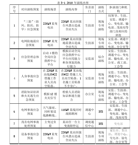 截止 2010 年 12 月 31 日,茂名供電局連續安全天數 601 天,2010 年完成了三個百日安全長周期,關鍵指標得到嚴格控制,沒有發生人身、電網、設備事故,沒有發生誤操作事故,特別是在一般設備事故控制方面成效顯著,由 2009 年度的 5 起實現了 2010 年的零事故,在督查方面,2010 年茂名供電局各部門(單位)督查人員共督查 4593 次,發現違章 39 起,違章率為 0.85%,與 2009 年同期相比有較大降幅,下降了 1.35 個百分點,遠低于省公司制定的作業違章率控制在 3%的指標。 安全生產風險管理體系建設以來,茂名供電局堅持以體系作為管理安全生產的唯一載體和工作指南,嚴格按照體系 51 個要素要求開展相應的工作。茂名供電局體系建設工作組織機構完善,策劃周密,過程監控得力,確保了體系運轉正常。在工作中按照“管理制度化、制度流程化、流程表單化、表單信息化”的工作要求,將廣東電網公司下發的 152 份管理標準、140 份技術標準要求落實到工作中,日常工作中嚴格按照 130 份作業指導書要求執行,通過 401 份作業表單進行必要的數據記錄,通過生產管理系統、營配一體化等信息系統,將流程固化。通過安全生產風險體系建設,茂名供電局初步消除了管理短板,提升了風險辨識能力和控制能力,實現了風險控制關口前移。 安全管理創先以來由安監部牽頭組織完成層層落實安全生產責任制,完成各級崗位安全生產責任書的簽訂工作,將安全目標和責任分解到每個人。生技部組織運行部門完成簽定“杜絕電氣誤操作專項責任狀”,要求相關人員崗位變動后兩周內完成重新簽訂,各部門完成率 100%。很好的落實局的各項安全生產工作和局各級人員的安全生產責任制,員工的責任感不斷的加強。