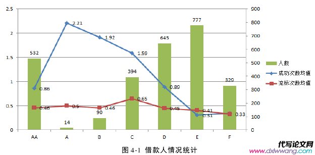 P2P 網絡借貸的出現,為急需資金的個人和中小企業提供了融資渠道,其依靠第三方網絡平臺,為個人與個人之間提供了公開透明的小額信用交易的可能。本文通過搜集拍拍貸平臺的用戶數據建立了借款滿標概率預測模型,以期促進借貸雙方交易更好的對接以及提高網貸平臺投融資效率。通過對全部用戶數據的聚類分析,得出信用等級相同的人會有不同的行為表現,而并不是信用等級越高的借款人滿標可能性越高,也即傳統意義上的信用等級并不能完全預測借款滿標可能性,有必要選取其他維度的信息或者尋找其他方法對借款滿標情況進行預測和分析。文章發現使用聚類分析的方法可以探索出平臺上不同借款人的行為模式差異,這為以后的研究打下了基礎,即使用聚類方法可以較優的識別和總結用戶的行為規律。接著文章構建二元邏輯回歸模型,對借款滿標概率進行預測,模型對借款滿標概率有90.6%的預測準確率。說明經過數據處理、模型構建等過程,本文建立的預測模型能夠較準確的對拍拍貸平臺的借款滿標情況進行預測。在進行借款結果分析時,選取樣本數據帶入滿標預測方程,可得到某一借款人某次借款的滿標概率,對投資者有效預測借款結果有一定實用價值。同時借款人可提前知道自己能否得到足夠的出借人關注進而融資成功,如果預期滿標概率較低可提前改變借款策略,以加大借款成功的可能性。通過對借款滿標的影響因素分析發現,借款人多個方面的信息均會對借款結果有影響。研究發現,年齡大的人比年齡小的人更容易借款成功,說明人們對年長借款人的財富積累有較好的預期,認為這類借款人有更好的還款保障。同時,男性與女性相比,更容易借款成功,說明投資人對男性的社會影響力和資金運用能力有更多的信任,這也可能與男性有更高的風險偏好進而提供給投資人更高的收益回報有關。研究也發現,對借款滿標與否有較大影響的因素是借款人的歷史還款表現,全額全額還清次數與逾期且還清次數均與借款滿標概率成正比。說明借款人良好的歷史還款記錄會較大增強出借人對借款人的信任。歷史交易記錄僅代表借款人在平臺上的交易活躍度,其對借款滿標的影響沒有歷史還款表現大,說明出借人在出借時最關注的是將來能否按時收回本息。同時基于拍拍貸特殊的審貸機制,歷史還款表現良好的借款人再次借款時更容易通過審核且在借款額度上也能有一定的提升。因此對于借款人而言,在進行網絡借貸時,按時履約還本付息會為其積累優良的借貸記錄,在同等條件下與其他借款人相比更容易借款成功,且能有更高的借款額度。這提示借款人在進行網絡借貸時應充分關注個人的歷史還款表現,也提示出借人在進行投資時,歷史還款表現好的借款人滿標概率更高,出借人可選擇這部分人群進行投資,實現投資訴求。
