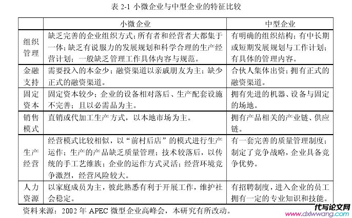 2.1 小微企業的界定與特征