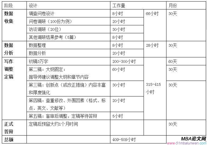目前三月份是很多MBA上半年度的論文關鍵期-也就是定稿月。每到這個時間,論文定稿前的一個月里總能接到無數個同學的咨詢電話,一般都是比較焦急和迫切的需求,都是關于加急定制的??偹苤话愦髮W的MBA在論文開題后約8個月的時間才能答辯。開題一般定在上半年3月份或者下半年9月份開題,下半年11月份或者次年5月份答辯。