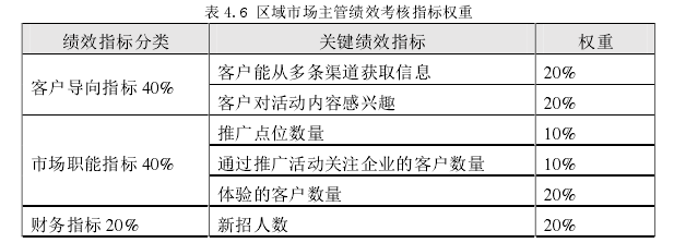 本文重新設計了 X 青少兒英語培訓公司市場部績效指標,旨在改善目前市場部面臨的主要問題,通過績效指標的更變,從企業內部由上到下,改變現有經營和管理思路,避免教育企業在銷售導向的道路上越走越遠,從而背離教育本質和市場營銷本質。進一步通過績效指導市場人員的日常市場行為,傳遞相應的價值觀理念,開始從根本上重視客戶價值。該績效指標在設計理念上遵循現有績效管理論的研究成果,結合 X 青少兒英語培訓公司市場部的實際情況,在原有的績效指標基礎上加入了客戶導向指標類型,并對原有的指標進行重新梳理和闡述,使得原有的部分指標推導邏輯符合整體的績效考核方式的設計理念。并且針對“客戶滿意度”這一客戶導向指標,進行了定量設計,使得“客戶滿意度”可以被量化,數據化,從而提升新的績效考核指標可以被實施,降低了實施難度。新的績效考核方式并沒有完全取消財務指標,而是降低了財務指標的權重比,這么做的目的是讓市場人員的工作要與公司的運營狀況掛鉤,不能完全脫離企業的運營情況而存在。本文探索出的新績效指標方案還僅停留在理論階段,還需要實際應用來檢驗其效果,是否能夠真正帶動市場部的改善。此外由于績效考核更新之后的效果具有較長的滯后性,因此短期內可能無法體現出期望的效果。另外新的績效考核方案對于市場經理的要求較高,需要具有市場營銷知識體系,并認可市場營銷理念的市場經理來推動??冃Э己酥笜说淖儎硬煌诓块T結構的變動,新技術的應用,這是從企業管理理念和方向的根本變動,因此需要企業從管理層到一線員工,由上到下的逐級推進,這才能使得績效考核的方式能夠真正得到貫徹和實施。本文設計的市場部績效考核指標,對于目前市場中現有的中小型教育培訓企業來說,實施難度較大,原因在于中小型企業在最初的發展目標是獲取一定的學員基數,保證校區能夠得到持續運營,但是對于已經發展一段時間,以及中大型的教育培訓企業而言,則具有一定的借鑒意義,采用本文提出的新的績效考核方案,逐步對市場部員工進行培訓,進而讓教育培訓行業的市場行為更規范,更精細,讓教育培訓回歸教育的本質,讓教育培訓的市場工作更具創意,讓更多的人開始認可教育培訓的市場行為。