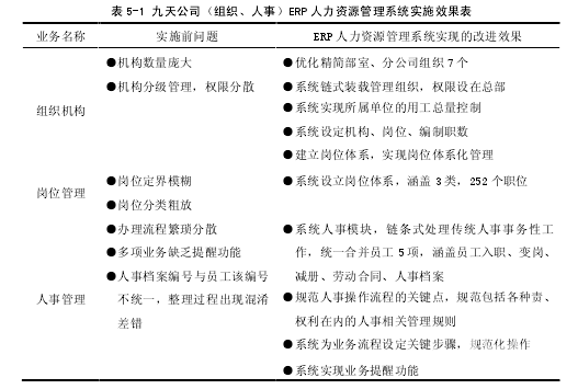 第 5 章 九天公司 ERP 人力資源管理系統實施效果與成功因素