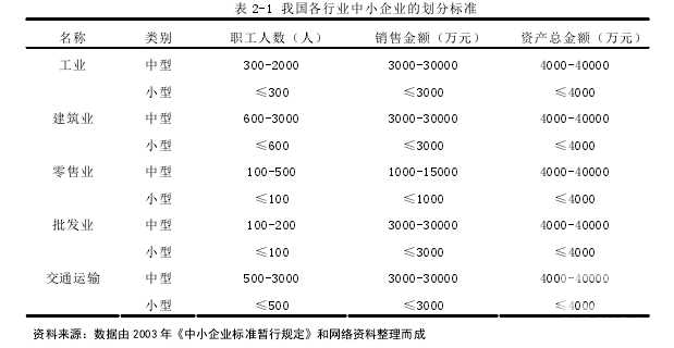 中小型外貿企業是在經濟全球化和國際貿易不斷發展的情況下,各地涌現出的從事國際貿易活動的中小型企業。 本章主要分析了我國中小型外貿企業的發展現狀和作用,以便為下文更好地研究日照市中小型外貿企業的融資現狀作鋪墊。中小企業(SME,Small and Medium Enterprise)是相對于大企業而言,在資金規模、人員數量以及經營規模等方面都比較小的單位。另外,同大企業相比,中小企業具有經營成本低、經營靈活、對市場反應靈敏以及內部執行力強等特點。 由于世界各個國家的國情不同,各國對中小企業的界定標準也各不相同。但是,從統計學的角度來看,世界各國對中小企業的劃分依據主要有定性標準和定量標準。 首先,定性標準也就是質量界定標準,該標準從企業的經濟特征和控制方式兩個方面進行考察。定性標準的三個方面表現為:企業的市場份額?。ㄆ髽I在所經營的領域內不具有壟斷地位,資本市場的融資無法開展)、擁有自主經營權(業主直接掌控著企業)和獨立的所有權(50%以上的股權由業主持有)。但是由于定性標準中含有比較多的主觀成分,因此在具體實施的過程中比較難把握。 其次,定量標準也就是以若干數量指標評價企業規模的大小,主要是以企業員工數、企業資產規模和企業銷售額作為指標。 最后,在定性標準和定量標準同時存在的條件下,各國對中小企業的界定一般以定性標準為主定量標準為輔。 根據《中小企業發展報告統計》顯示,在美國的制造業中,中小型企業的從業人員不多于 500 人;在歐盟國家當中,中小企業的從業人員多于 250 人且年交易額低于 4000 萬歐元;在澳大利亞這個國家中,中小企業中的從業人員在 100 人以上 499 人以下。 在我國,國家經濟貿易委員會、國家發展和改革委員會、國家財政局和國家統計局于2003 年 2 月 19 日聯合發布了《中小企業標準暫行規定》。該規定中指出,將企業職工數、銷售額和資產總額作為劃分中小企業標準的參照性指標。其中,表 2-1 為我國不同行業里中小企業的劃分標準。