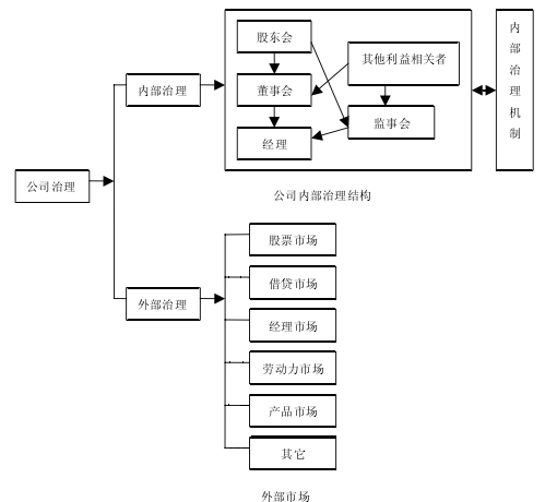 1、一個有效的公司治理體系包括公司內部治理和外部治理兩部分。公司內部治理是指公司的所有者為保障自己的投資收益,就控制權在由所有者、董事和高級經理層組成的內部機構之間的分配所達成的一種制度安排,直接通過股東大會、董事會和經理層等公司內部的決策和執行運行機制發生作用的。相對應的,公司外部治理是指公司的所有者通過市場體系對經營者進行控制,以確保所有者收益的方式,即通過產品/要素市場、經理市場、金融市場、資本市場以及并購市場和控制權市場等諸多市場的外部壓力制約產生作用,是一種非正式的制度安排。如果沒有外部市場的競爭機制所產生的間接治理機制以及所提供的有關實施治理的充分信息,內部治理也不能單獨發揮作用。