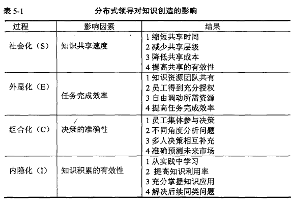 企業知識創造的四個過程包括知識的社會化、外顯化、組合化、內隱化,不同過程的主要任務分別是:知識共享、知識顯化、知識地圖建立與預測市場、知識積累。作者從每個階段的任務出發,研究分布式領導對其過程的影響,通過訪談資料的整理以及分析總結,得出分布式領導可以提高知識共享速度、提升任務完成效率、增強決策的準確性以及能夠更加有效的進行知識積累,使整個知識創造的過程更加充分有效。