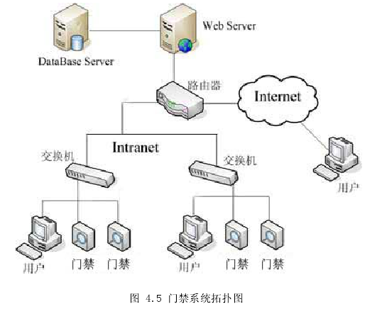 由系統網絡結構可知道,門禁系統通過 IP 分配直接連接到交換機上. 學生數據初始化時,由門禁系統通過門禁信息輸入設備讀入欲進入宿舍的學生信息,再通過接口操作界面輸入對應學生的學號、姓名、宿舍樓號和宿舍號,從而組成一個完整的學生信息數據表,保存在整個系統的數據庫中. 當系統啟用門禁系統,學生進行操作后,門禁系統輸入設備會讀取學生的證件信息,通過網絡把處理后的信息編碼提交給 Web 服務器,由 Web 服務器通過表單的提交和數據庫交互處理,然后根據要求實現是否返回處理結果來給門禁加電的整個操作.?整個指紋讀取響應處理時間約 3 秒,如該幢學生宿舍人數較多,可以考慮多放置幾臺門禁系統。