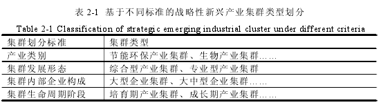根據戰略性新興產業集群劃分標準不同,將戰略性新興產業集群分為以下幾種類型。如表 2-1 所示。?