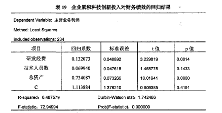 (2)科技創新投入與企業財務績效之間存在顯著的正相關關系,科技創新投入有利于企業績效的提升??萍紕撔峦度胫苯拥某晒钱a生新工藝,獲得新專利技術等,但是這些新工藝、性的專利技術能夠提升生產要素的利用效率,減少浪費,提高產量;同時,新技術的采用也會降低成本,打通銷售渠道,提高銷量,提高市場占有率。本文以主營業務利潤率、總資產周轉率、資產負債率和凈利潤增長率作為被解釋變量,分別代表企業的收益績效、營運績效、償債績效和成長績效。通過實證研究得知,科技創新投入與企業財務績效呈顯著正相關關系,對企業的經濟效益具有正向促進作用。