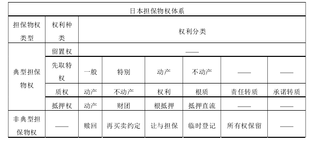 德國未規定動產抵押,立法確定動產上僅可設定質押,但僅憑質押無法完全解決其動產擔保問題,因此大量產生了以讓渡所有權方式進行擔保的現象。雖然德國的讓與擔保制度以判例的方式存在,但立法中仍有承認讓與擔保合法性的條款。①德國還使用《租稅調整法》、《和議法》等單行法對讓與擔保的效力進行了確認。固然我們可以采取此種立法例來設立讓與擔保,但大量的既有制度比如動產抵押將被替代或轉換其適用方式和范圍。故與本節考量的讓與擔保與我國現行法律體系之關系沒有比較、借鑒價值。 日本則既規定了動產抵押、質押,又以判例確認了動產讓與擔保,而我國也已規定了動產抵押,故下文以日本的擔保物權體系與我國現行法律制度簡要進行比較,尋找讓與擔保設立的解決途徑: