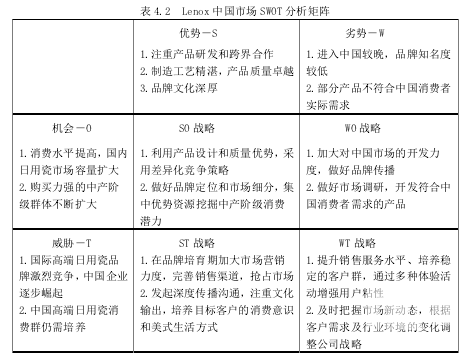 4.3  Lenox 中國市場 SWOT 分析 ........ 20
