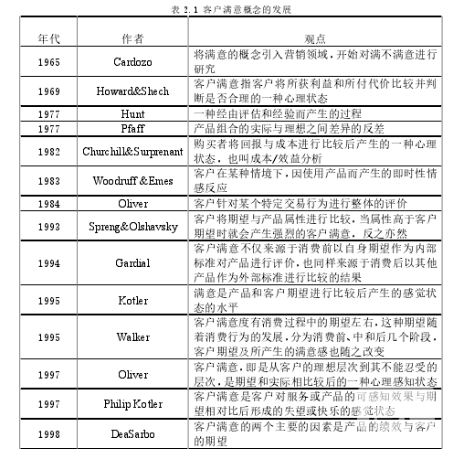 早在 1965 年 Cardoz 就在市場營銷領域提出了客戶滿意的理念,并認為地客戶滿意的研究實質就是對客戶滿意這一概念的肯定。但是,到目前為止,對于客戶滿意的概念,仍然沒有一個統一的表述。對于客戶滿意概念的不同理解,主要有以下代表性觀點構成: 然學者對客戶滿意有著不同的認識,但是從總體上來看,強調最多的還是認為客戶滿意度就是“客戶對企業所提供的服務或產品的一個評價過程,即客戶在購買商品前在心里會有一個預期期望,并且會在消費時產生實際消費期望,從而將這兩個期望值進行比較的的過程。結合現有的文獻,對客戶滿意的研究領域主要都集中在構建期望不一致的模型及其基本構造。主要研究內容集中在于分析客戶對不同性質的產品和服務的消費中,客戶的預期期望價值和實際消費后的感知價值產生不一致的原因以及如何在不同的消費環境中更好的去影響客戶的消費滿意程度。 期望不一致模型的研究認為,消費者在消費前借助廣告的宣傳以及自身的經歷,對將要消費的產品或服務產生一個心理預期,在消費過程中,再將產品或服務帶來的感受與之前形成的心理預期進行比較,這種比較就有可能形成一定的感受差異。如果產品或服務的績效與之前的預期相符,則客戶感受則保持中立,不會滿意也不會不滿意;如果績效低于預期,則形成消極的差異,導致客戶產生不滿意的情緒;只有當績效高于預期時,客戶才會在此次消費過程中獲得滿意的情緒,這是一種積極的差異。 期望這個概念被 Oliver 在 1980 年提出,而且他還建立了一個研究客戶滿意程度的具有代表性的期望不一致模型。這個模型將客戶消費前的預期期望與消費后的感知實際進行比較,并分析出兩者之間的差距大小和方向,它直接決定著客戶對產品或服務的滿意程度。當兩者差距方向為正時,也就意味著消費后的感知實際超過了消費前的預期期望,代表客戶對產品或服務感到滿意,而且這種差異越大,客戶的滿意度就會越高。相反,當消費后的實際期望低于預期期望時,客戶就會產生不滿情緒,差距越大,意味著客戶對產品的不滿就越嚴重(Oliverand Bearden,1985)。此后,Oliver根據期望理論提出了“比率模型”,通過客戶對消費前的預期期望與真正消費后產生的感知期望相比較結果來衡量客戶對產品或服務的滿意度。