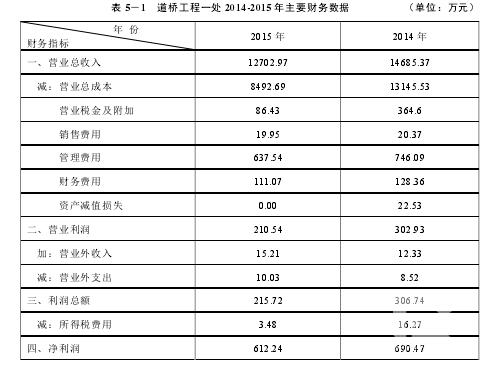 EVA 的計算旨在基于企業投入的資本存在成本的這一假設前提下,更加準確的反應一個企業的經營、財務狀況。本章所使用的該公司報表數據來源于中原建設工程公司的內部有關資料,下面以中原建設工程公司下屬二級單位道橋工程一處為例進行 EVA 的有關計算,該單位 2014-2015 年財務數據資料如表 5-1 所示:債務資本成本:因中原建設工程公司隸屬中石化石油工程建設公司,中石化全面實行資金集中管理,禁止下屬單位進行外部籌融資,僅允許通過集團內部申請貸款,故本文借款利息率采用中石化內部貸款利率 4.8%來研究。權益資本成本:采用風險溢價定價模型。我國的市場風險溢價大約為 3%-5%,本文選擇 4%作為風險溢價,這個數值的選取不會影響 EVA 指標的反映能力。根據資本資產定價模型(CAPM)本文根據中原建設工程公司道橋工程一處 2014-2015 年財務數據為例,依照此方法,分別對中原建設工程公司其他 12 家二級單位的指標進行計算,得出 EVA 后,將其與同年凈利潤進行比較,由表可知,從 EVA 角度來看,中原建設工程公司所有二級單位近兩年的 EVA 均大于 0,說明企業的預期收益高于所投入的資本,經營者為企業創造了財富。但是在 12 家單位中的 9 家單位 2015 年 EVA 數據比 2014 年均有所下降,平均下降幅度經測算約為24.8%,說明企業對于資金的使用效率在降低。究其原因,一方面是受近兩年國際石油行業效益普遍不佳,石油企業進入寒冬期,石油石化產能萎縮,加之施工隊伍有增無減,造成市場競爭激烈,開發難度加大,中標率低,總體業績下滑。另一方面,為應對市場的寒冬期,公司在市場開發費用及項目前期成本的投入增加。從表中還可以看出,雖然2015 年整體凈利潤較 2014 年下降不是很明顯,但是 EVA 波動較大,說明企業在保證利潤的前提下,投入的資本卻有著大幅增加。這樣的差別顯示了凈利潤與 EVA 對企業經營狀況的解釋不同,EVA 剔除了一些非經營項目與資本占用對企業的影響,最大程度上還原了企業真實的經營狀況,因此與利潤為導向的業績考核標準有著很大區別。在計算過程中合理調整了會計報表中的一些項目,充分考慮了股權資本成本對企業價值的影響,與凈利潤指標相比,在衡量企業的價值創造能力和經營業績時更為準確全面。