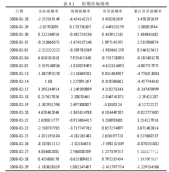 4.1  短期市場績效分析